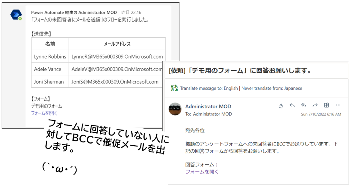 これまでに解説したフローの応用として、フォームへの未回答者に対して回答の催促メールをBCCで送信するフローをつくりました。